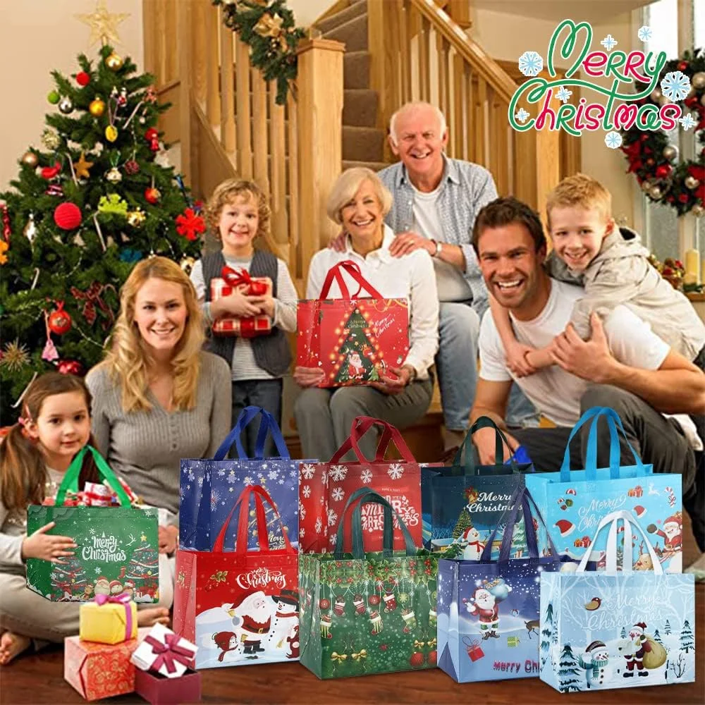 Christmas Gift Tote Bags – Reusable Foldable Holiday Shopping Bags