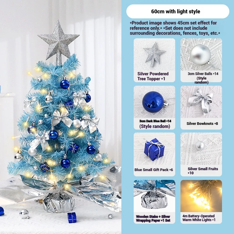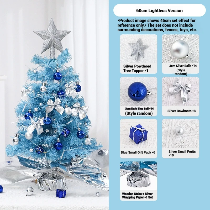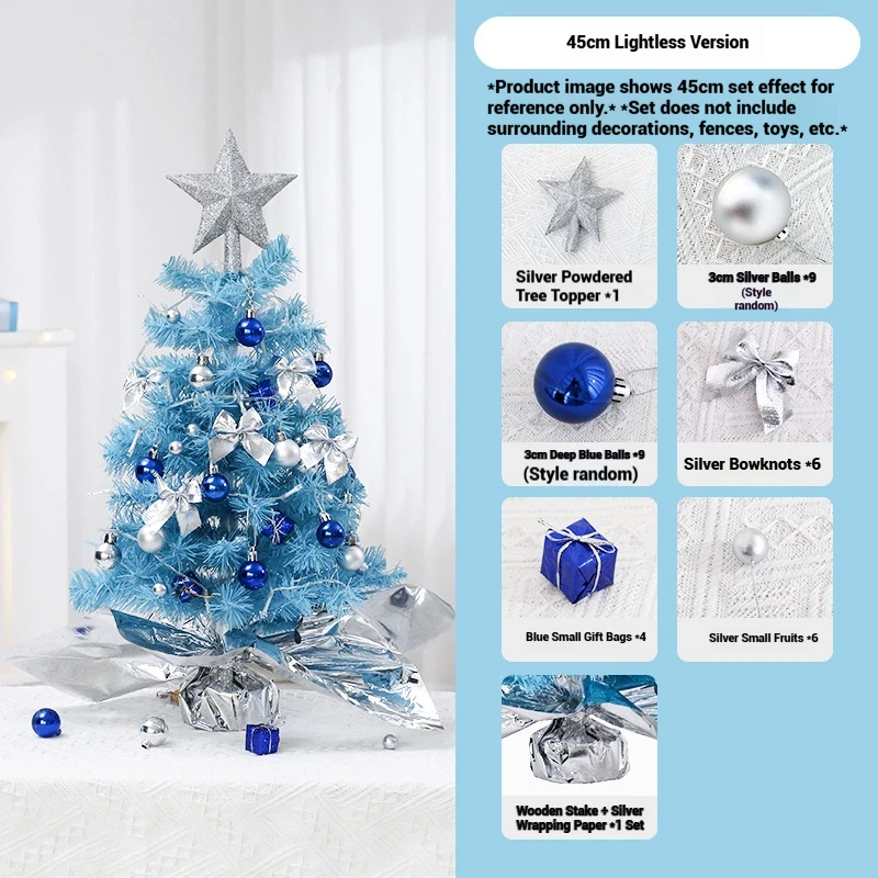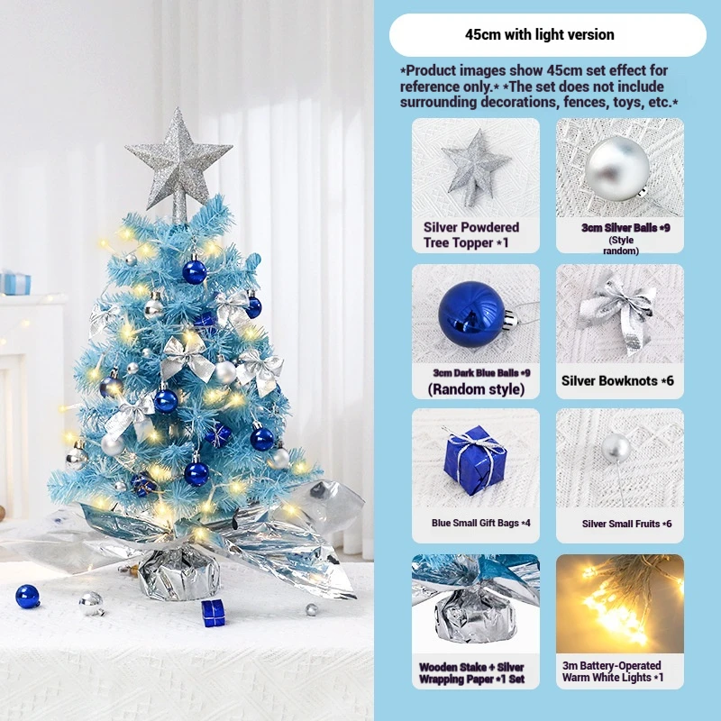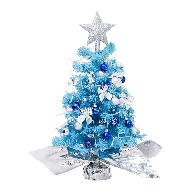 In the world of Christmas decorations, this mini blue Christmas tree set stands out with its unique and fresh style. It breaks the traditional impression of green Christmas trees, with clear blue as the main color and silver accessories, creating an elegant yet childlike Christmas corner for you.