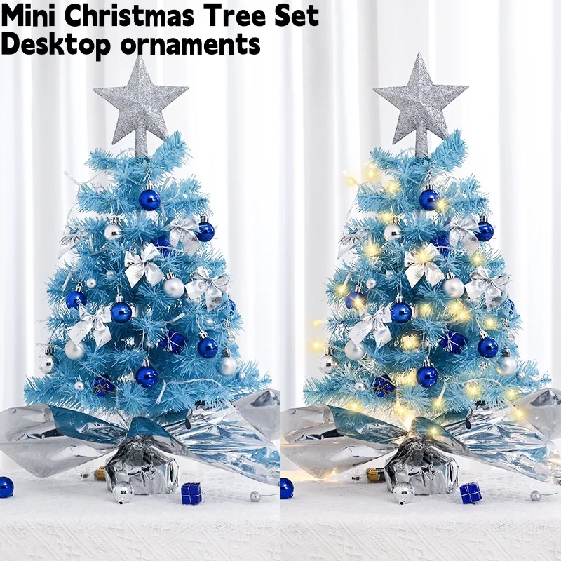Mini Blue Christmas Tree Set: Fresh and Elegant Christmas Small Gifts, Lighting up Your Desktop Festive Atmosphere